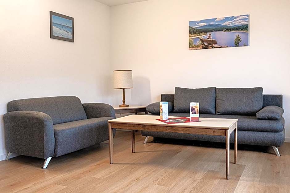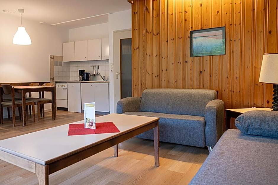This spacious one-bedroom apartment has a furnished terrace with wonderful sea views. There is an airy lounge with a TV and sofa bed, and a kitchenette with an oven, electric hob and fridge.